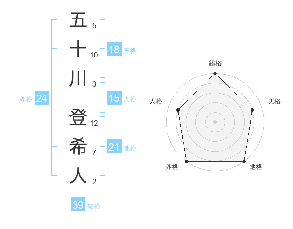 五十川 登希人さんを姓名の画数から五運を鑑定