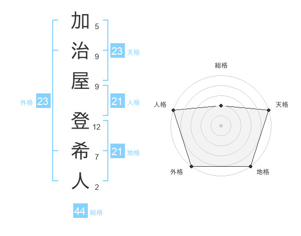 加治屋 登希人さんを姓名の画数から五運を鑑定