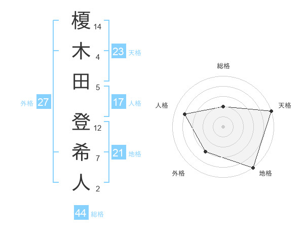 榎木田 登希人さんの天格は23画の5点!