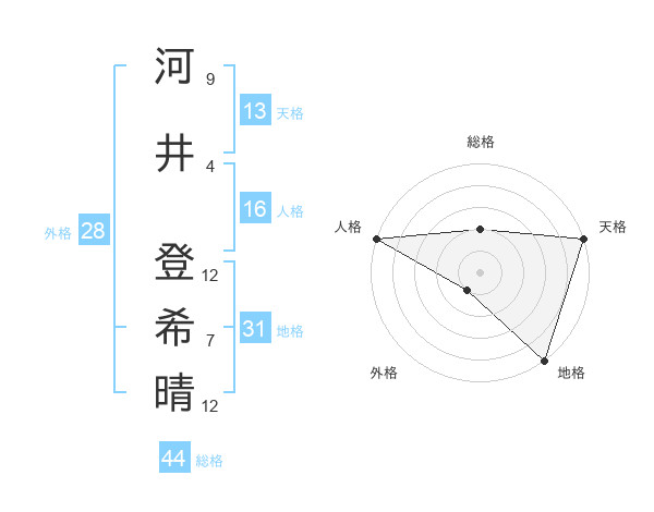 河井 登希晴さんを姓名の画数から五運を鑑定