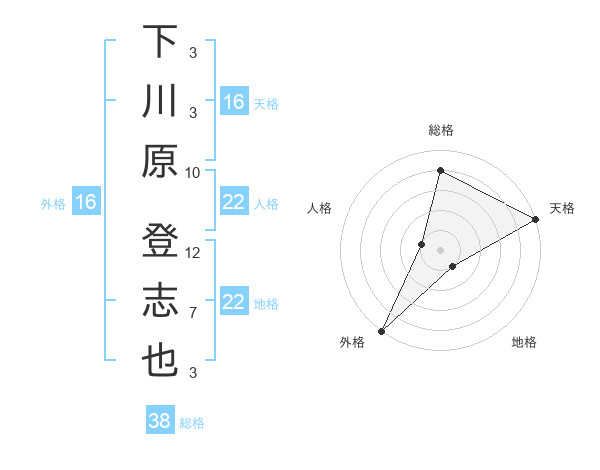 下川原 登志也さんを姓名の画数から五運を鑑定