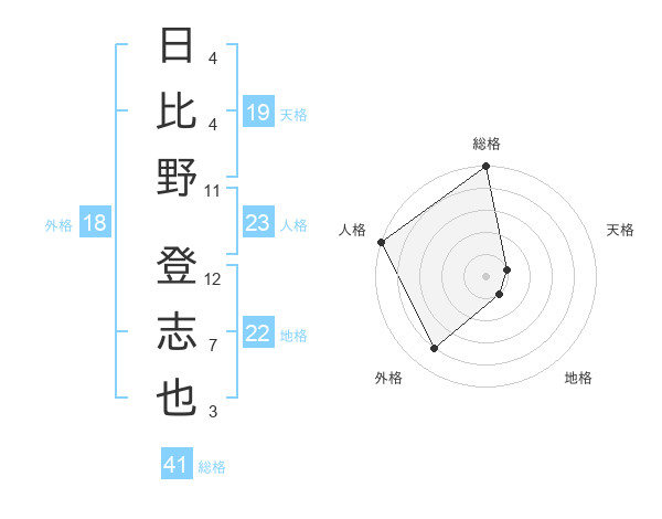 日比野 登志也さんを姓名の画数から五運を鑑定