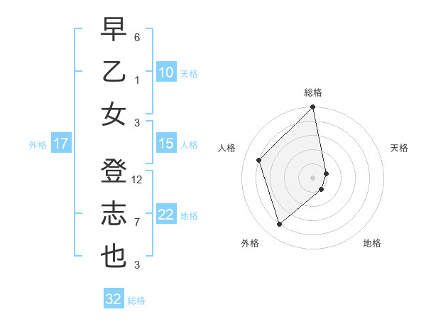 早乙女 登志也さんを姓名の画数から五運を鑑定