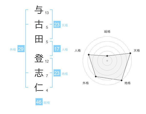 与古田 登志仁さんを姓名の画数から五運を鑑定