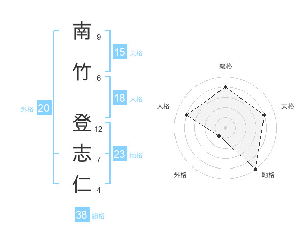 南竹 登志仁さんの総格は38画の4点!