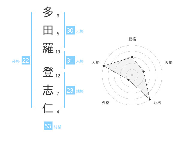 多田羅 登志仁さんを姓名の画数から五運を鑑定