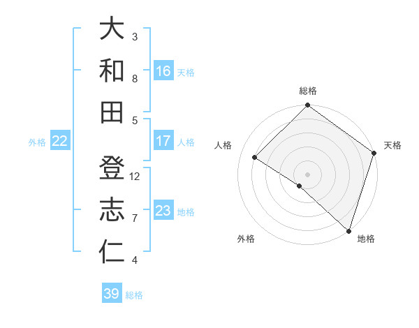 大和田 登志仁さんを姓名の画数から五運を鑑定