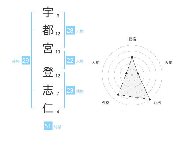 宇都宮 登志仁さんを姓名の画数から五運を鑑定