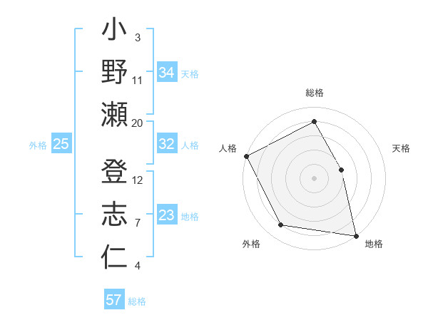 小野瀬 登志仁さんを姓名の画数から五運を鑑定