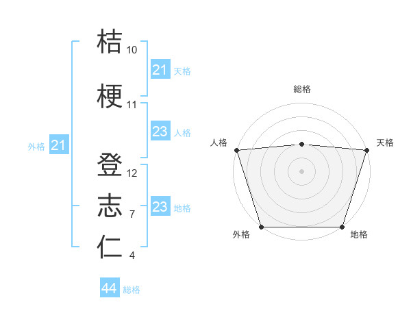 桔梗 登志仁さんの総格は44画の2点!