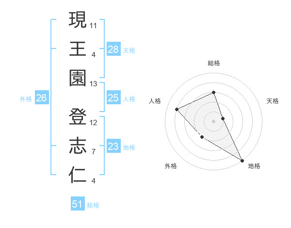 現王園 登志仁さんを姓名の画数から五運を鑑定