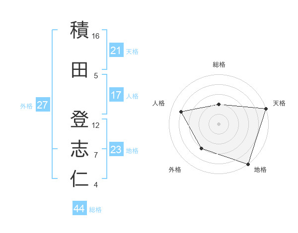 積田 登志仁さんの地格は23画の5点!