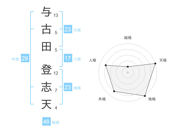 与古田 登志天さんを姓名の画数から五運を鑑定