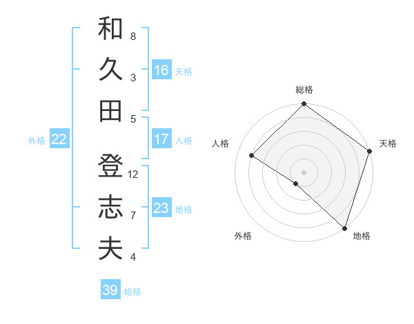 和久田 登志夫さんを姓名の画数から五運を鑑定