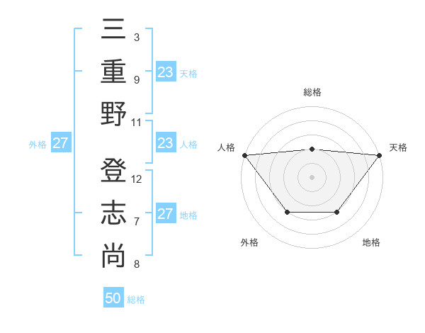 三重野 登志尚さんの総格は50画の2点!