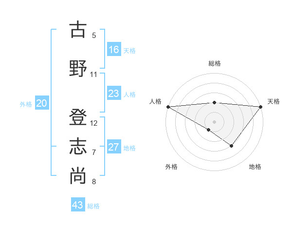古野 登志尚さんの総格は43画の2点
