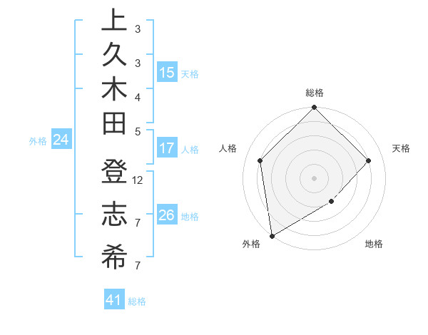 上久木田 登志希さんの総格は41画の5点!