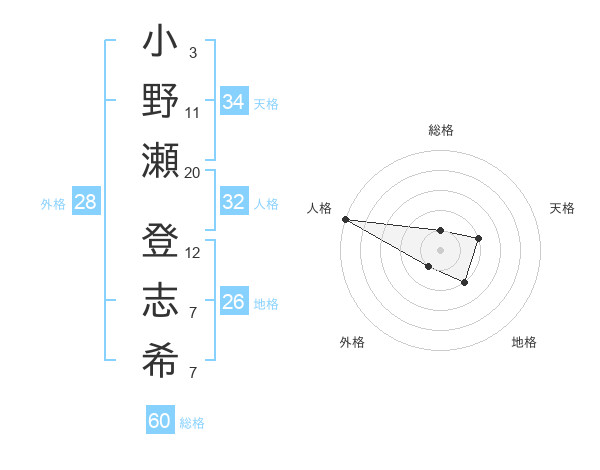 小野瀬 登志希さんの総格は60画の1点!