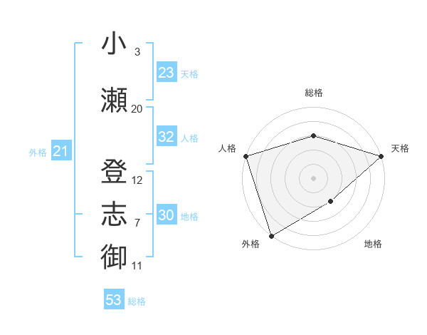 小瀬 登志御さんを姓名の画数から五運を鑑定
