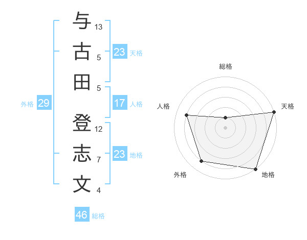 与古田 登志文さんを姓名の画数から五運を鑑定