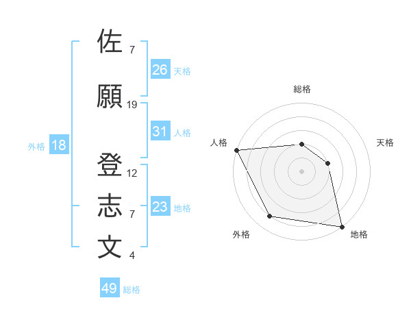 佐願 登志文さんを姓名の画数から五運を鑑定