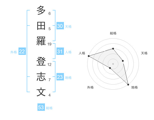 多田羅 登志文さんを姓名の画数から五運を鑑定