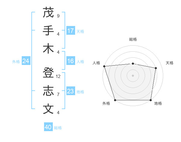 茂手木 登志文さんを姓名の画数から五運を鑑定