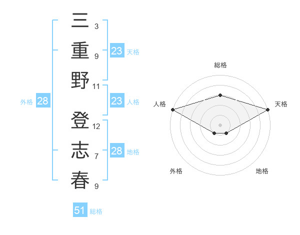 三重野 登志春さんを姓名の画数から五運を鑑定