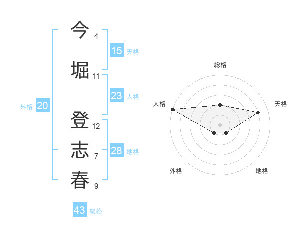 今堀 登志春さんを姓名の画数から五運を鑑定