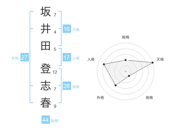 坂井田 登志春さんを姓名の画数から五運を鑑定
