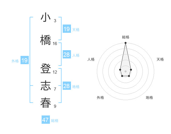小橋 登志春さんの総格は47画の5点!