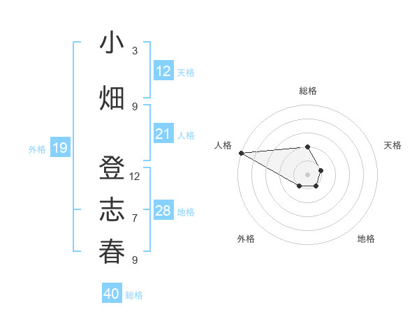 小畑 登志春さんを姓名の画数から五運を鑑定
