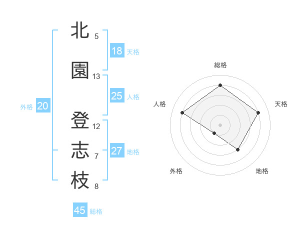 北園 登志枝さんを姓名の画数から五運を鑑定