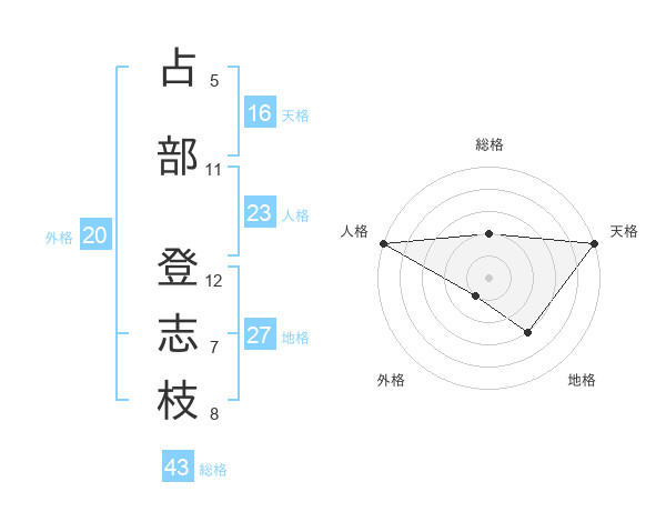 占部 登志枝さんを姓名の画数から五運を鑑定