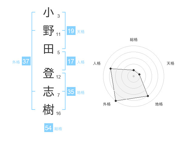 小野田 登志樹さんを姓名の画数から五運を鑑定