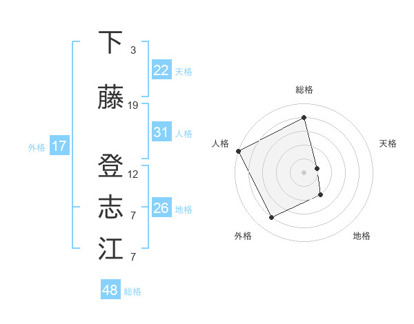 下藤 登志江さんを姓名の画数から五運を鑑定