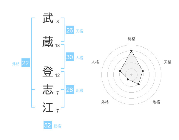 武蔵 登志江さんの総格は52画の4点!