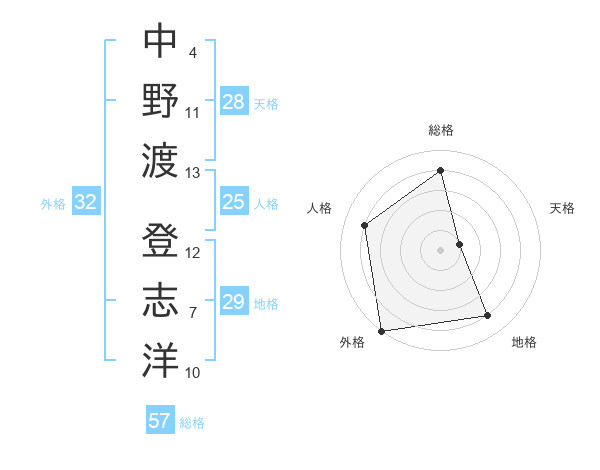 中野渡 登志洋さんを姓名の画数から五運を鑑定