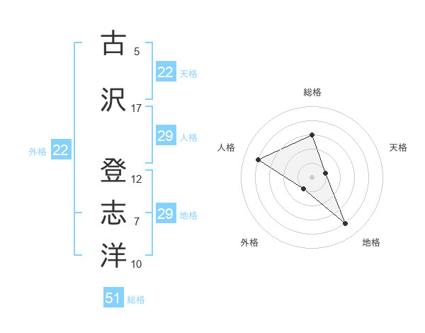 古沢 登志洋さんの天格は22画の1点!