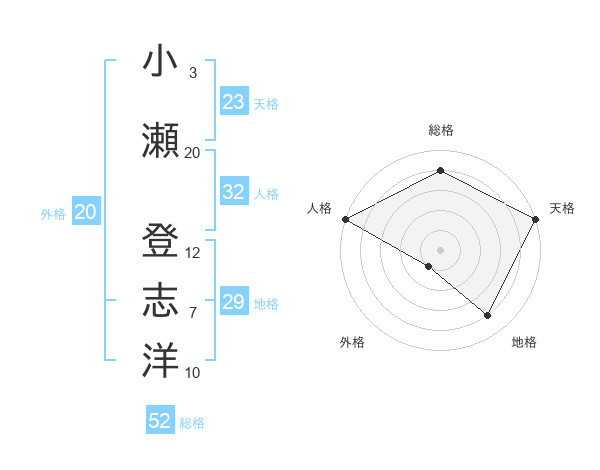 小瀬 登志洋さんを姓名の画数から五運を鑑定