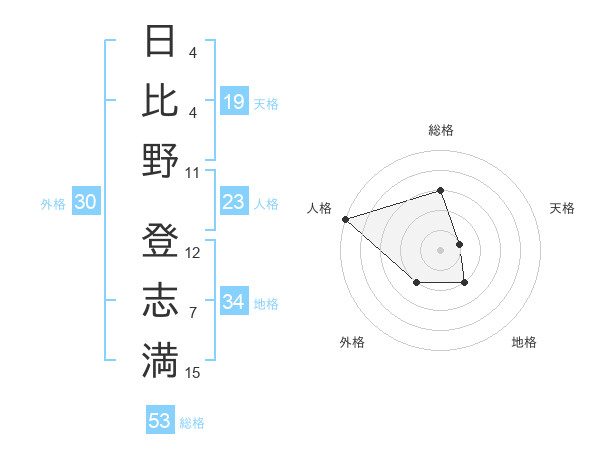 日比野 登志満さんを姓名の画数から五運を鑑定