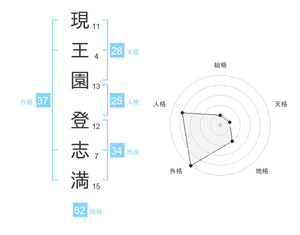 現王園 登志満さんを姓名の画数から五運を鑑定