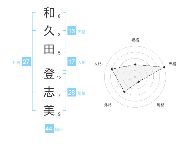 和久田 登志美さんを姓名の画数から五運を鑑定