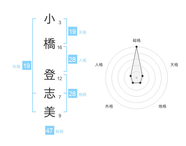 小橋 登志美さんを姓名の画数から五運を鑑定