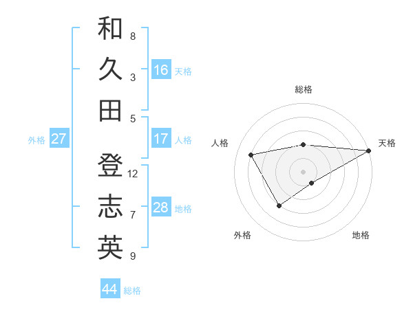 和久田 登志英さんを姓名の画数から五運を鑑定