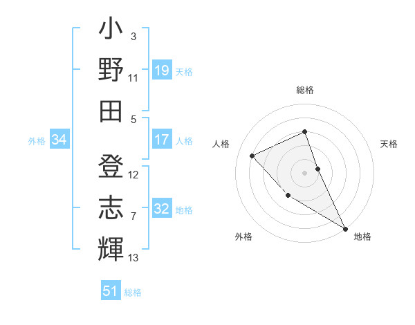 小野田 登志輝さんを姓名の画数から五運を鑑定