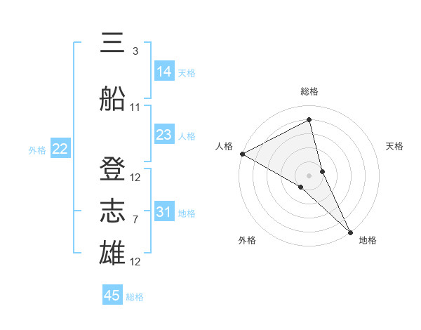 三船 登志雄さんを姓名の画数から五運を鑑定