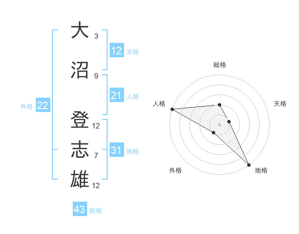 大沼 登志雄さんを姓名の画数から五運を鑑定