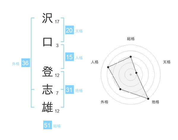 沢口 登志雄さんを姓名の画数から五運を鑑定