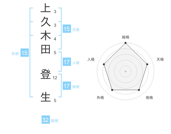 上久木田 登生さんを姓名の画数から五運を鑑定